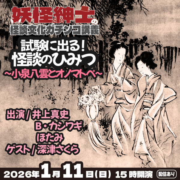 【出演・配信中】1月25日(日)まで「【妖怪紳士の怪談文化ガチンコ講義】試験に出る!怪談のひみつ〜小泉八雲とオノマトペ〜」@なんば白鯨