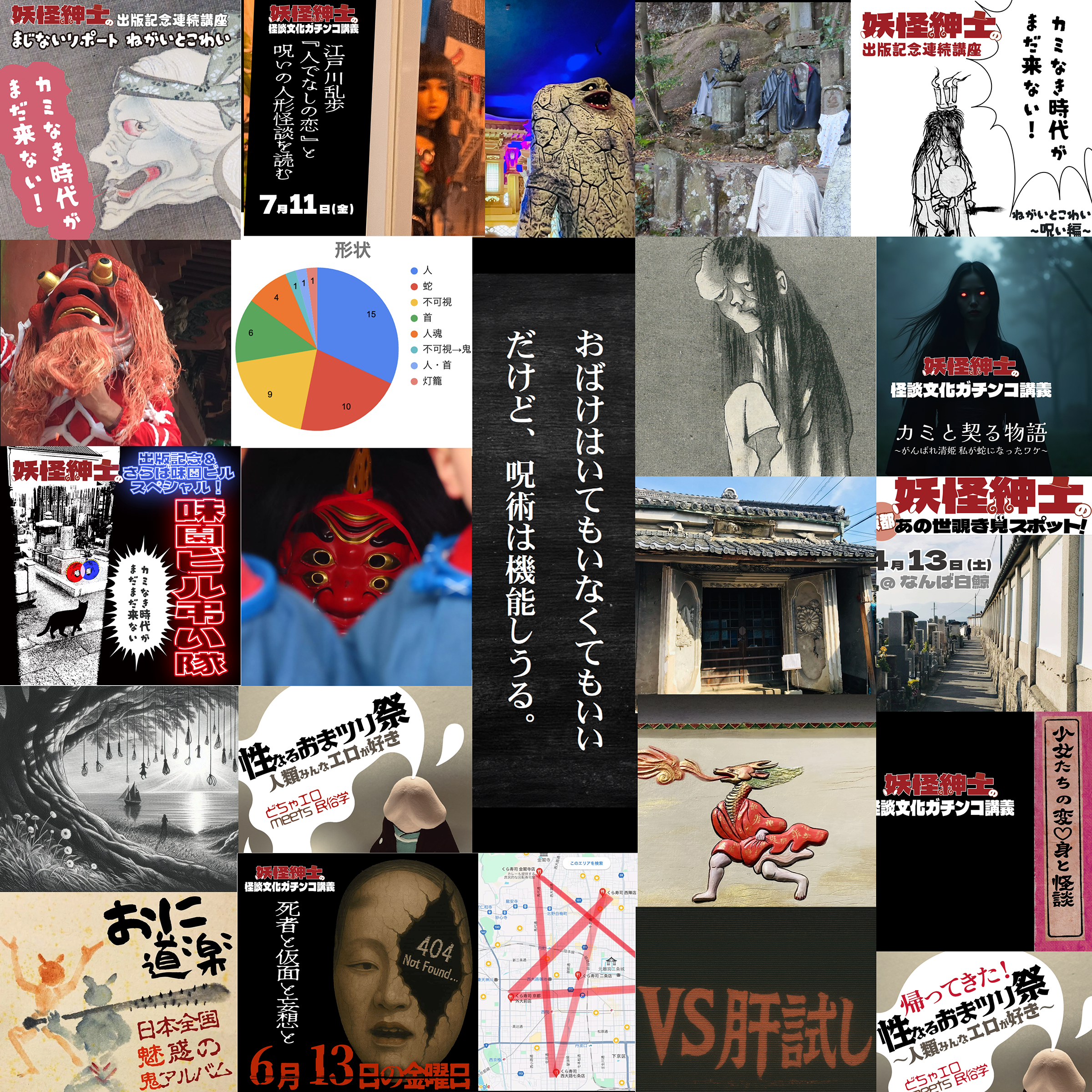 アマビエ、エロ信仰、呪物、蛇、鬼、陰陽師、京都のあの世、生霊、蔵、首吊り、呪い、願い、弔い、神婚、変身、仮面、人形、江戸川乱歩、肝試し、四谷怪談!